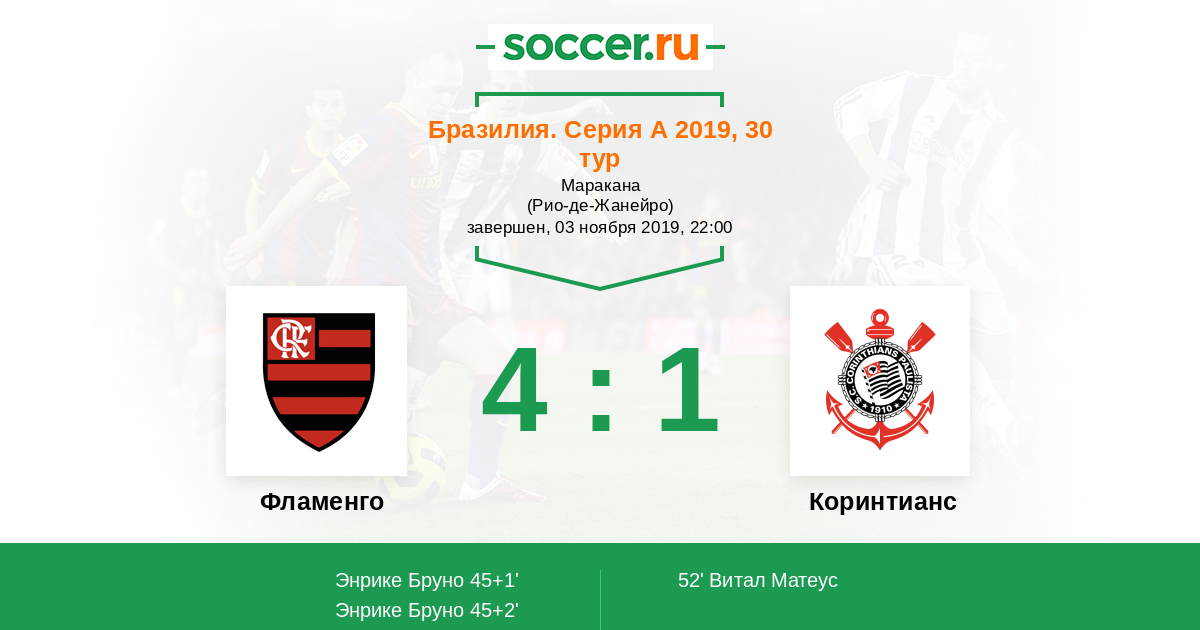 Гол45+2' (2:0) Энрике Бруно (27) (Жерсон (8))