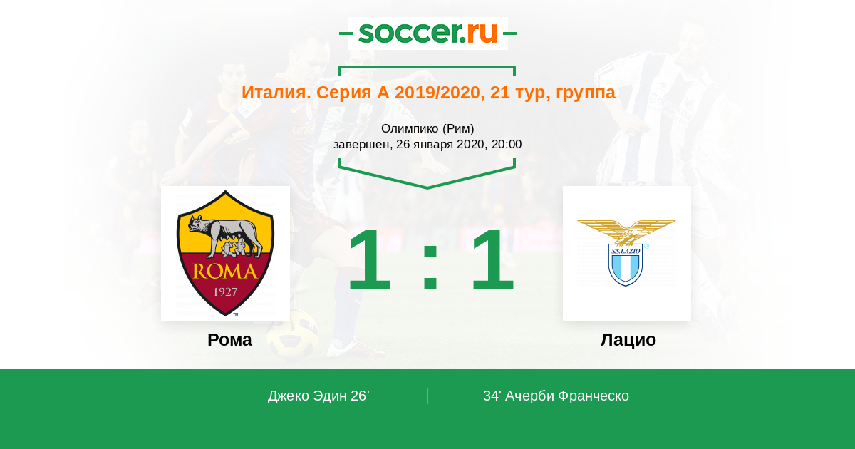 26' (1:0) Джеко Эдин (9) (Кристанте Бриан (4))
