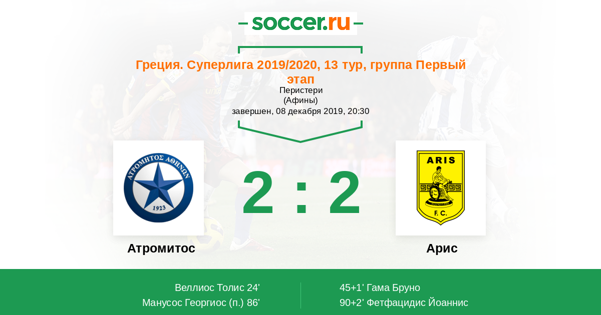 24' (1:0) Веллиос Толис (39) (Гало Родриго (12))