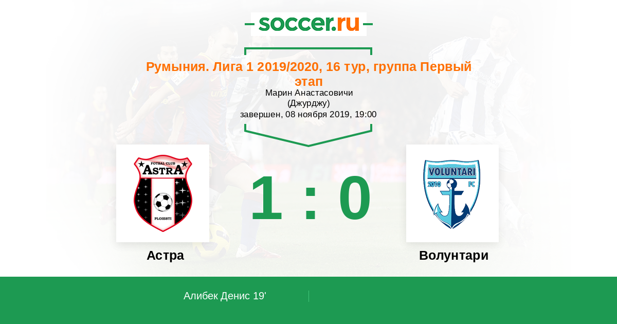 19' (1:0) Алибек Денис (7) (Будеску Константин (50))