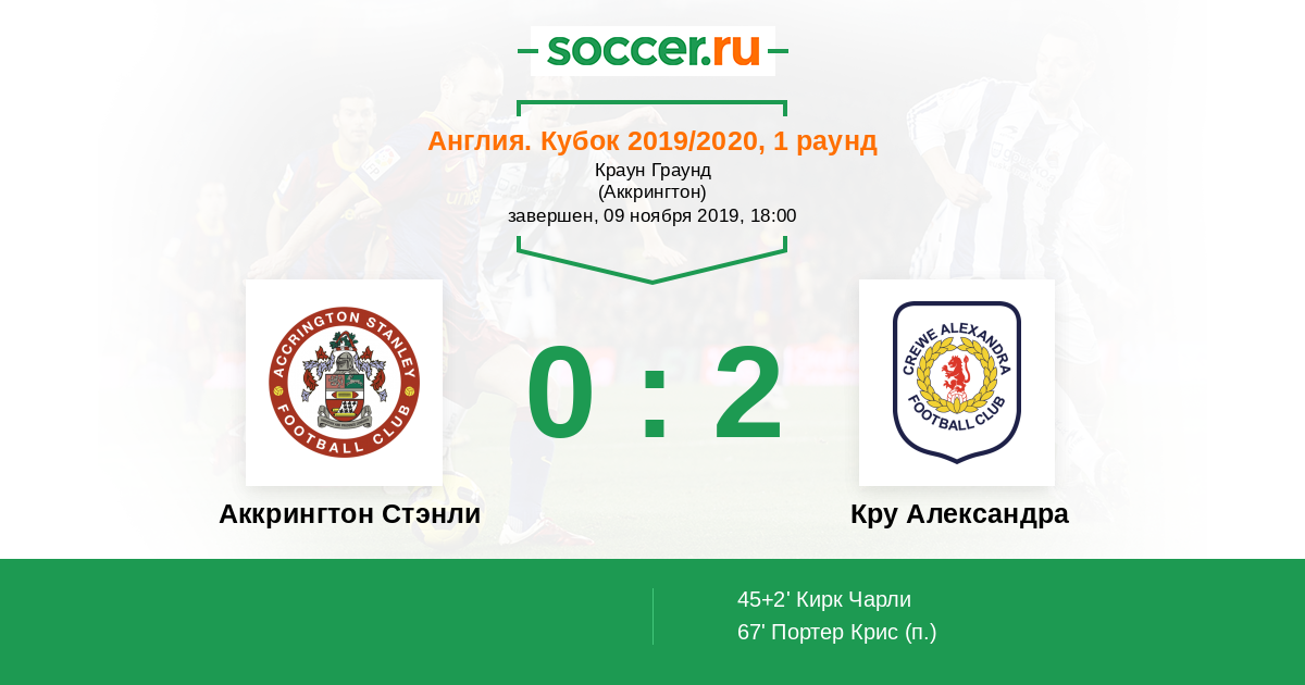 45+2' (0:1) Кирк Чарли (10) (Грин Пол (12))