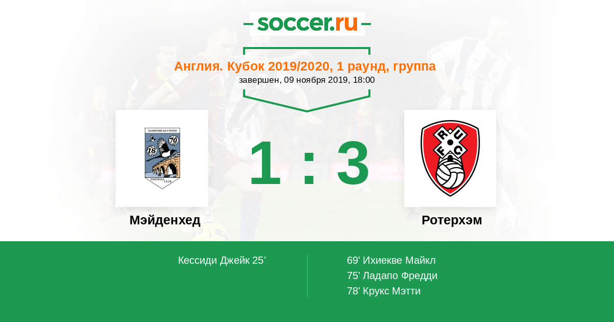 25' (1:0) Кессиди Джейк (9) (Шеклефорд Райхим (16))