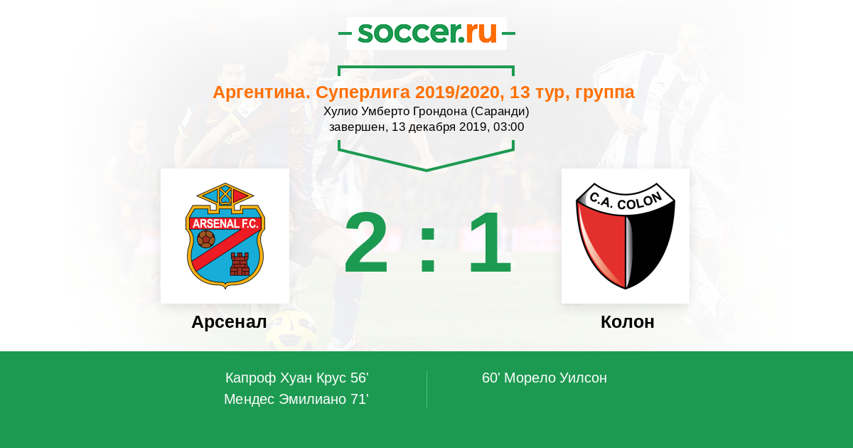 71' (2:1) Мендес Эмилиано (5)