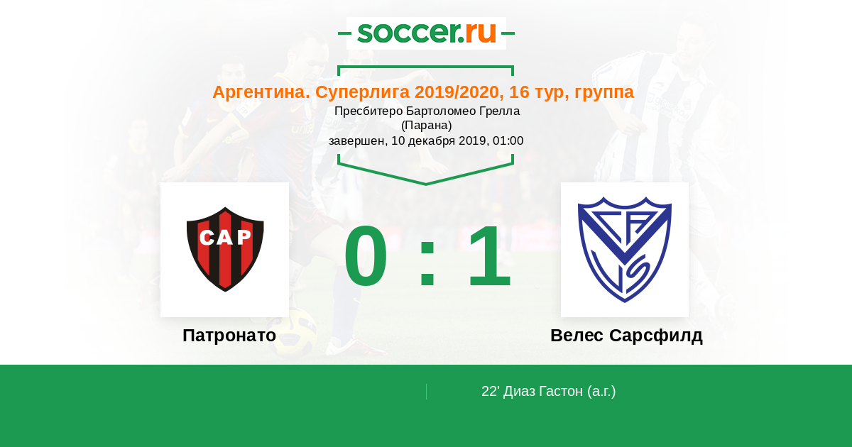 22' (0:1) Автогол Диаз Гастон