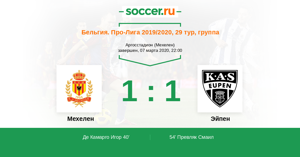40' (1:0) Де Камарго Игор (10) (Каборе Исса (29))