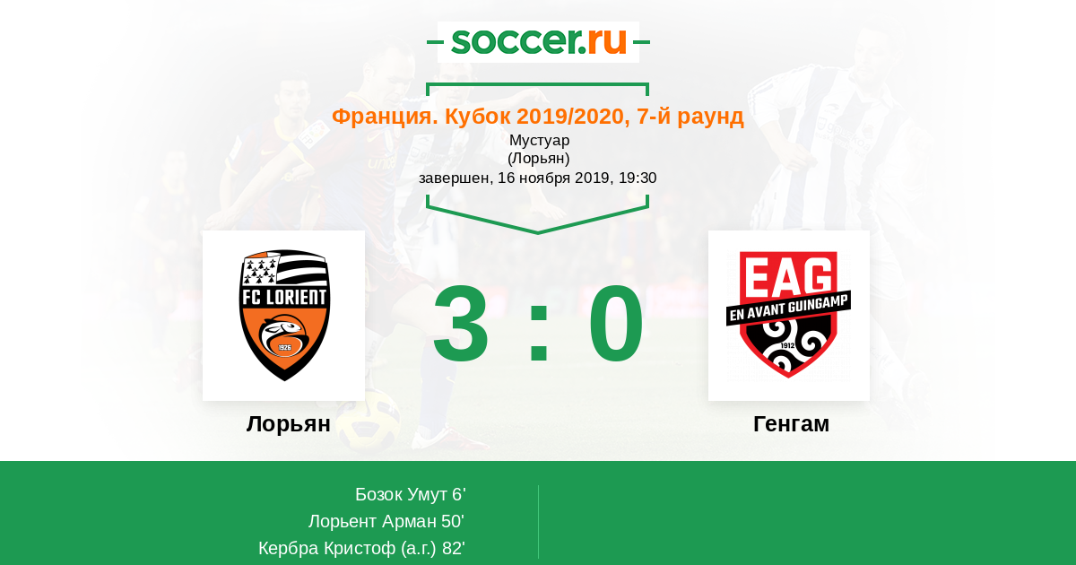 82' (3:0) Автогол Кербра Кристоф