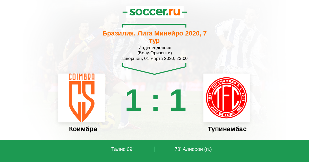 78’ 1:1(П) Алиссон