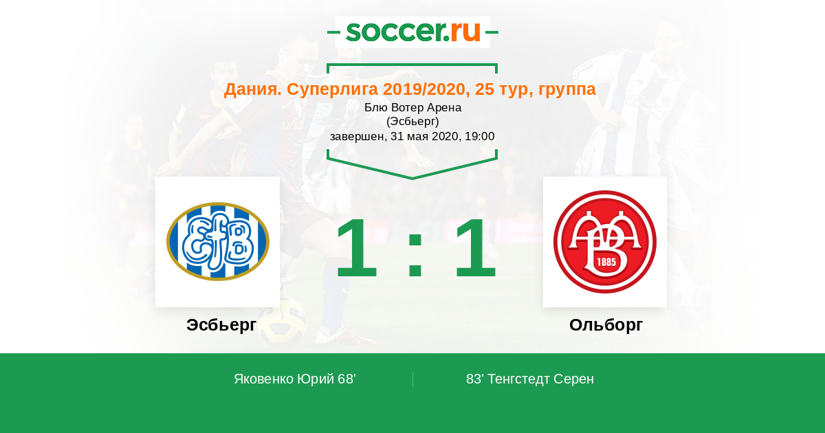 83' (1:1) Тенгстедт Серен (27) (Паллесен Кристоффер (6))