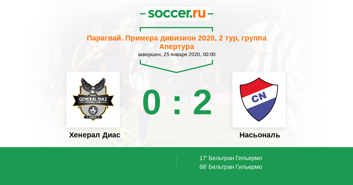 17' (0:1) Бельтран Гильермо (19) (Коста Франко Лаутаро (23))