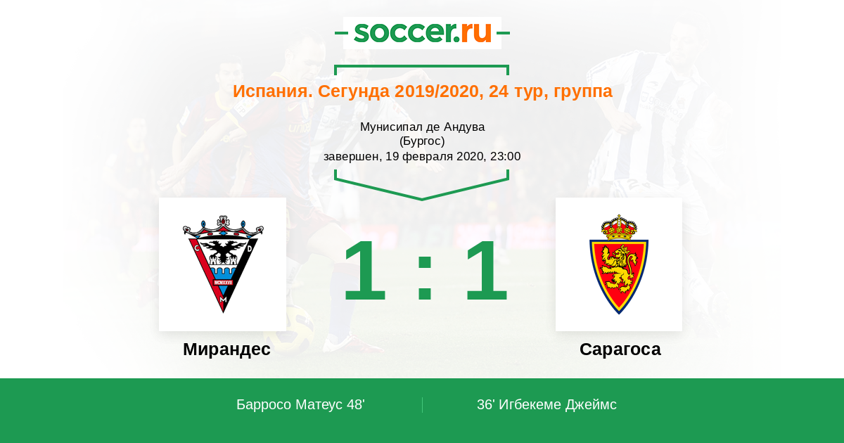36' (0:1) Игбекеме Джеймс (12) (Хави Пуадо (11))