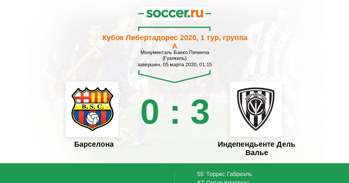 55' (0:1) Торрес Габриэль (7) (Мера Эфрен Александр (10))