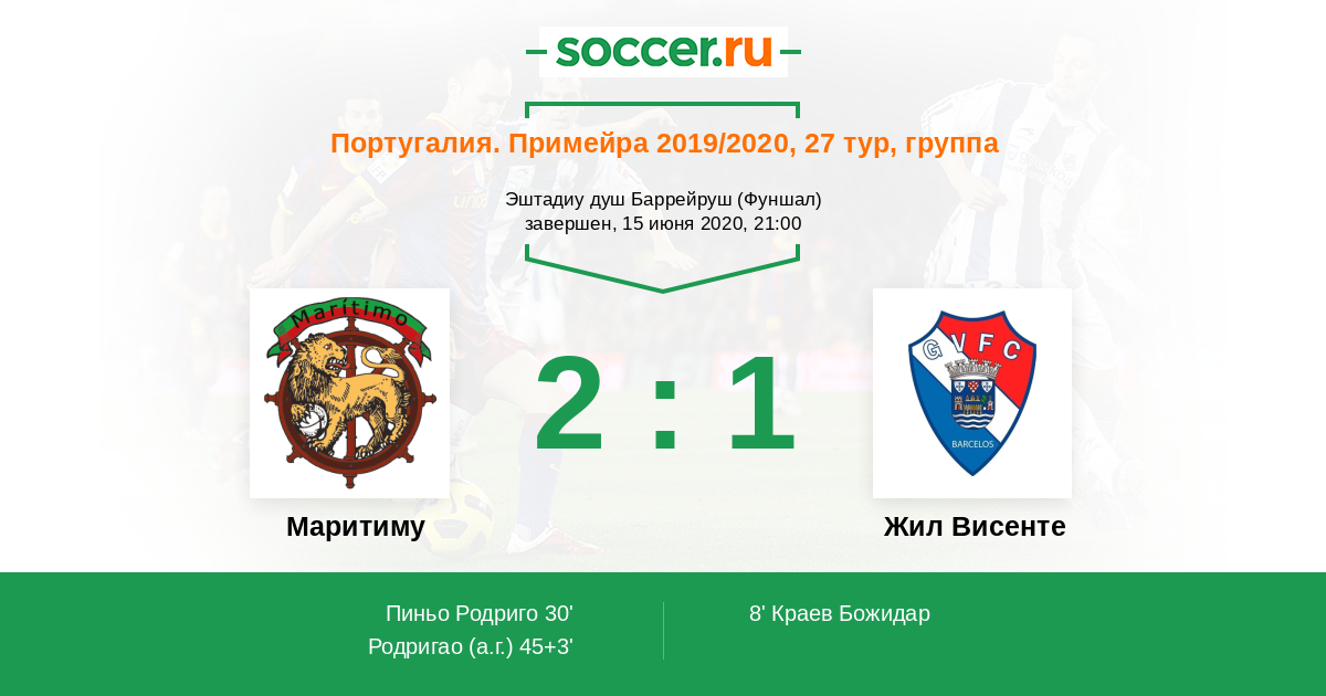 45+3' (2:1) Автогол Родригао (5)
