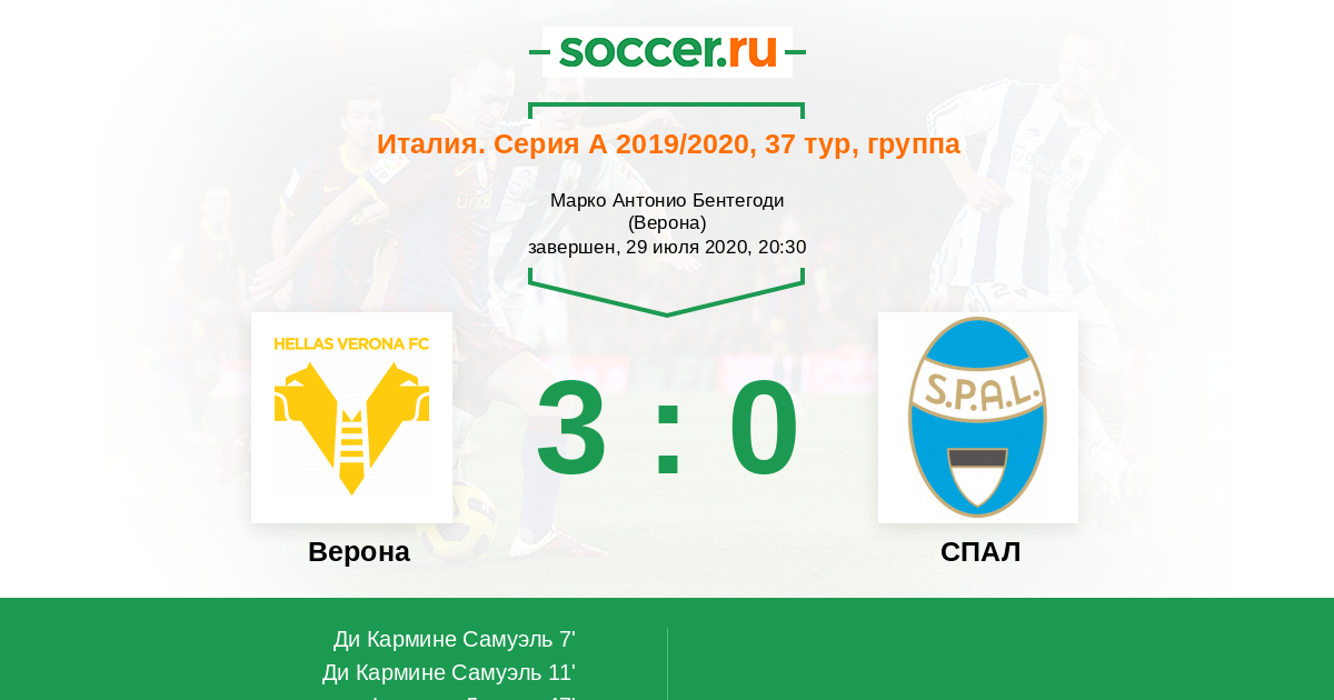 11' (2:0) Ди Кармине Самуэль (10) (Димарко Федерико (23))