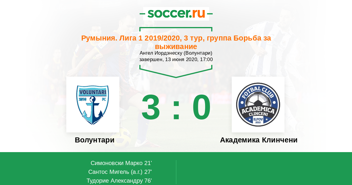 21' (1:0) Симоновски Марко (70) (Мэцан Александру (10))