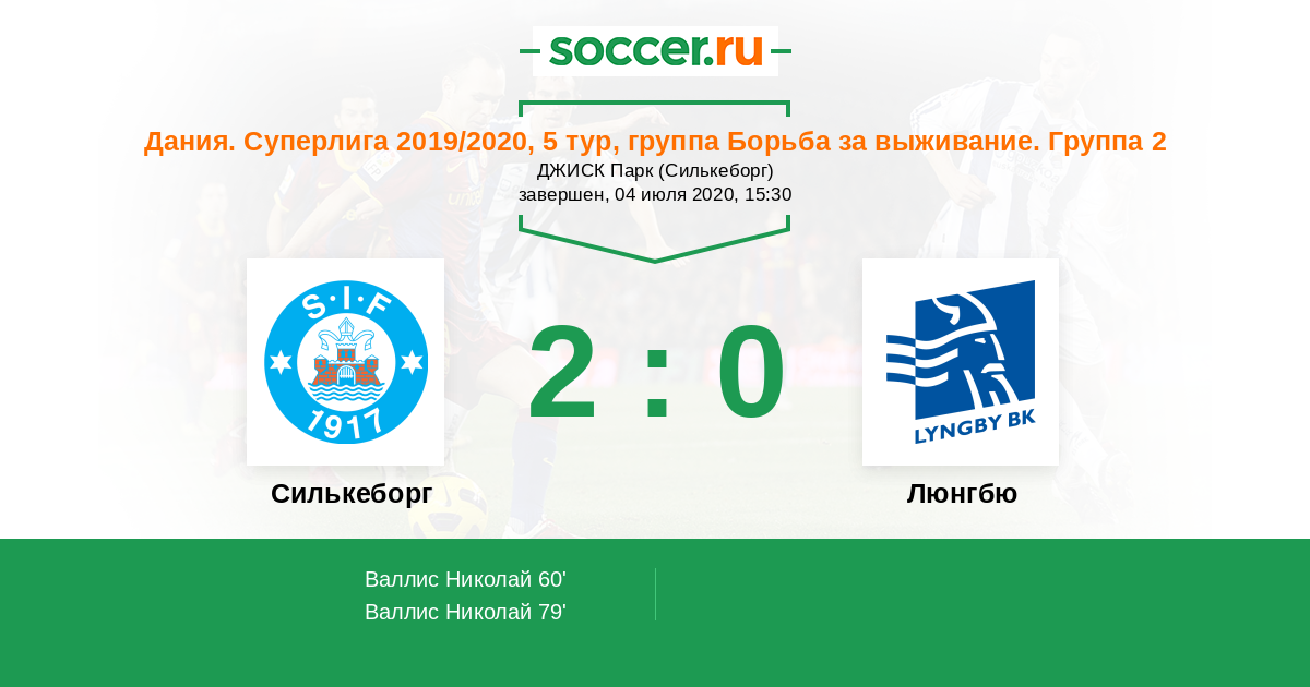 60' (1:0) Валлис Николай (19) (Каалунд Мадс (17))