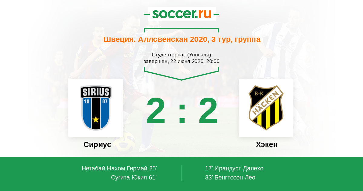 33' (1:2) Бенгтссон Лео (16) (Линдгрен Расмус (21))