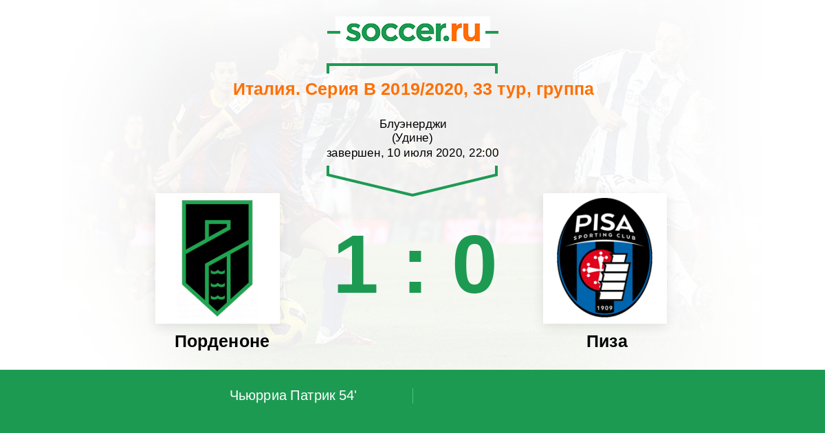 54' (1:0) Чьюрриа Патрик (13) (Маззокко Давиде (18))