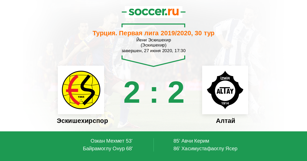 68' (2:0) Байрамоглу Онур (8) (Озкан Мехмет (41))