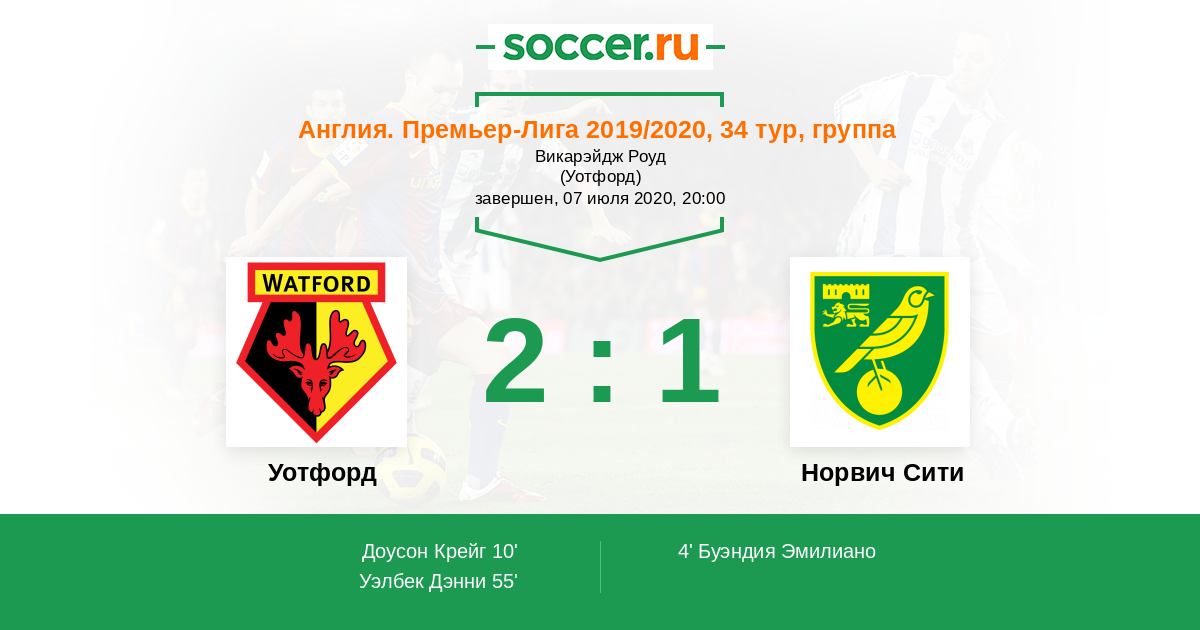 55' (2:1) Уэлбек Дэнни (10)
