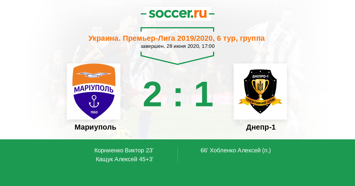 23' (1:0) Корниенко Виктор (75) (Кирюханцев Игорь (29))