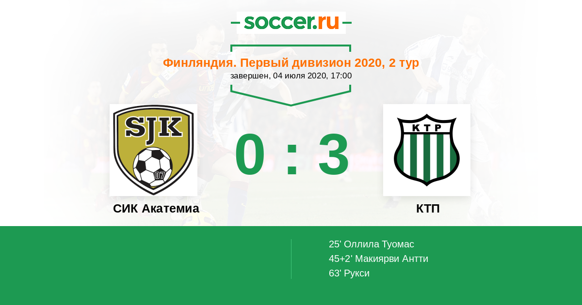 25' (0:1) Оллила Туомас (14)