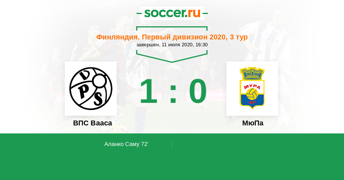 72' (1:0) Аланко Саму (7)