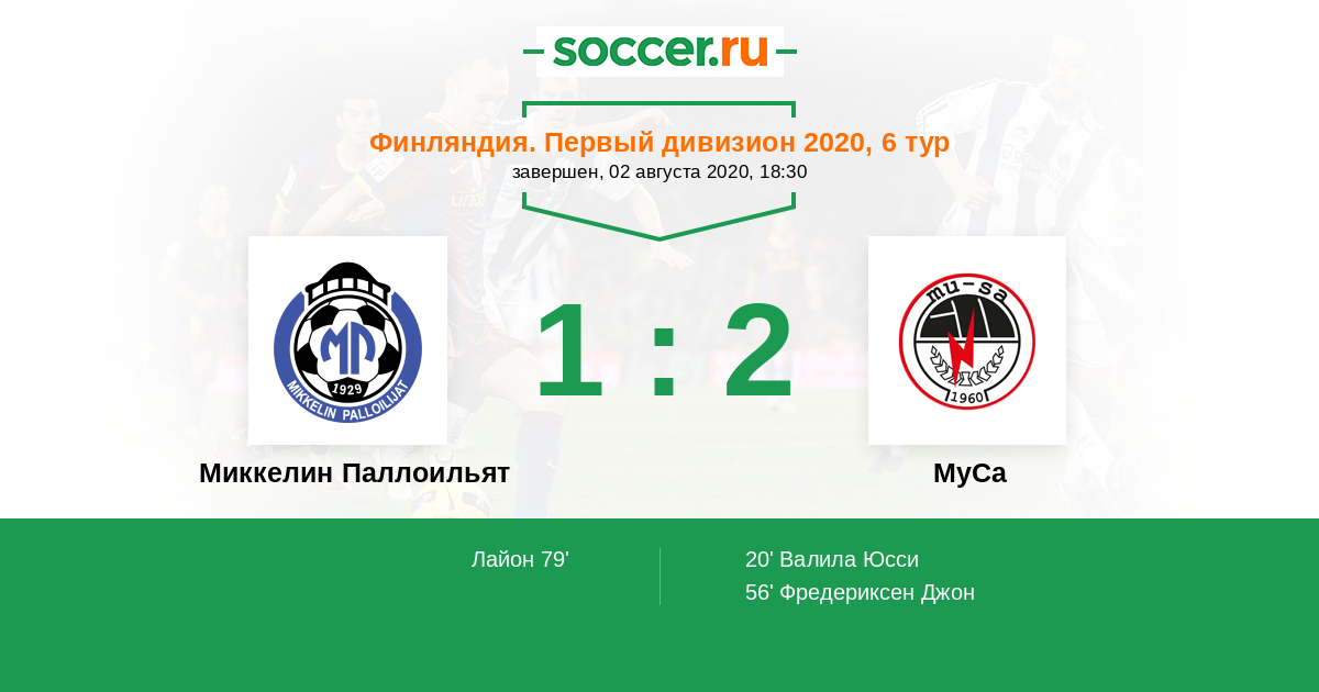 20' (0:1) Валила Юсси (6)