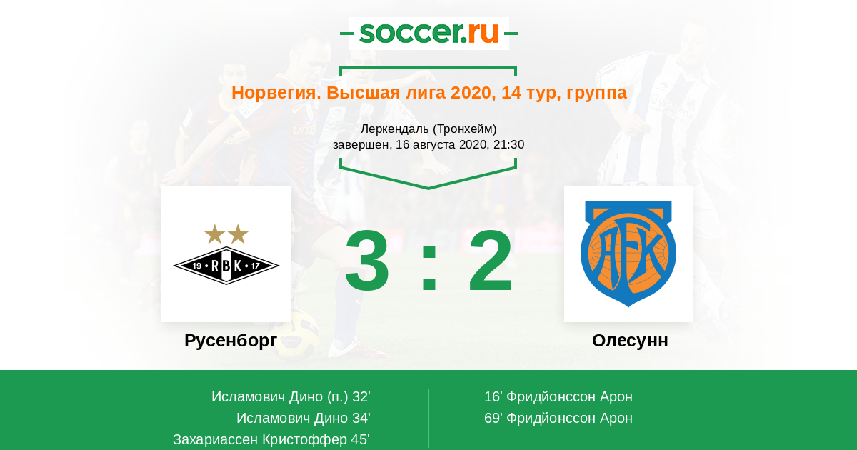 34' (2:1) Исламович Дино (9) (Хеденстад Вегар (2))