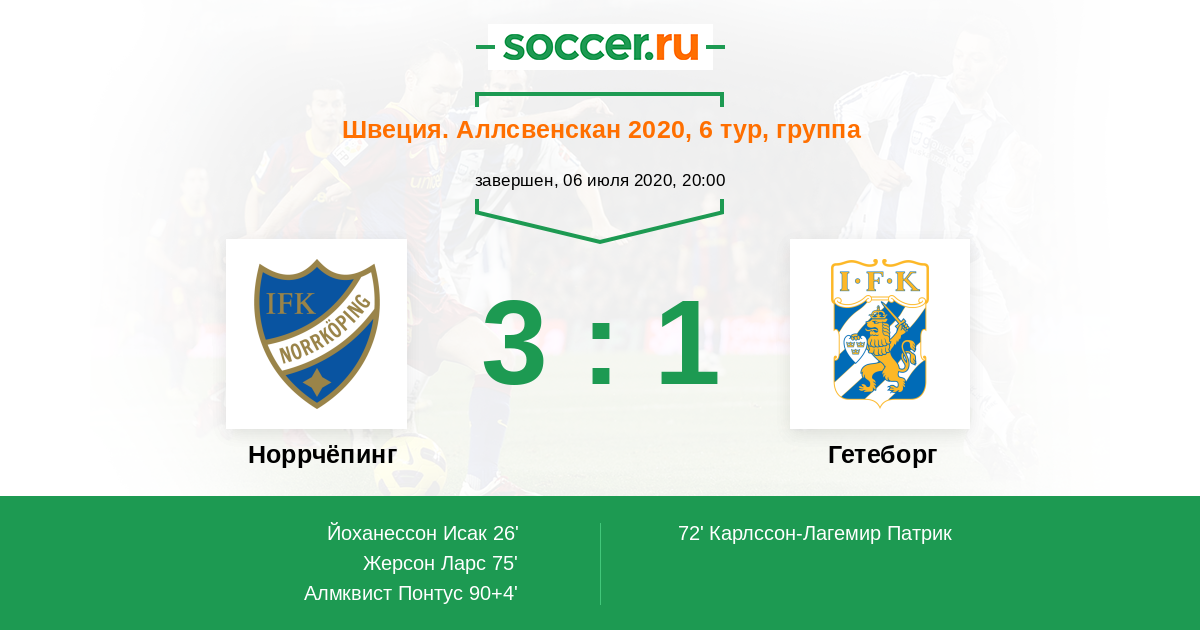 75' (2:1) Жерсон Ларс (4) (Йоханессон Исак (27))