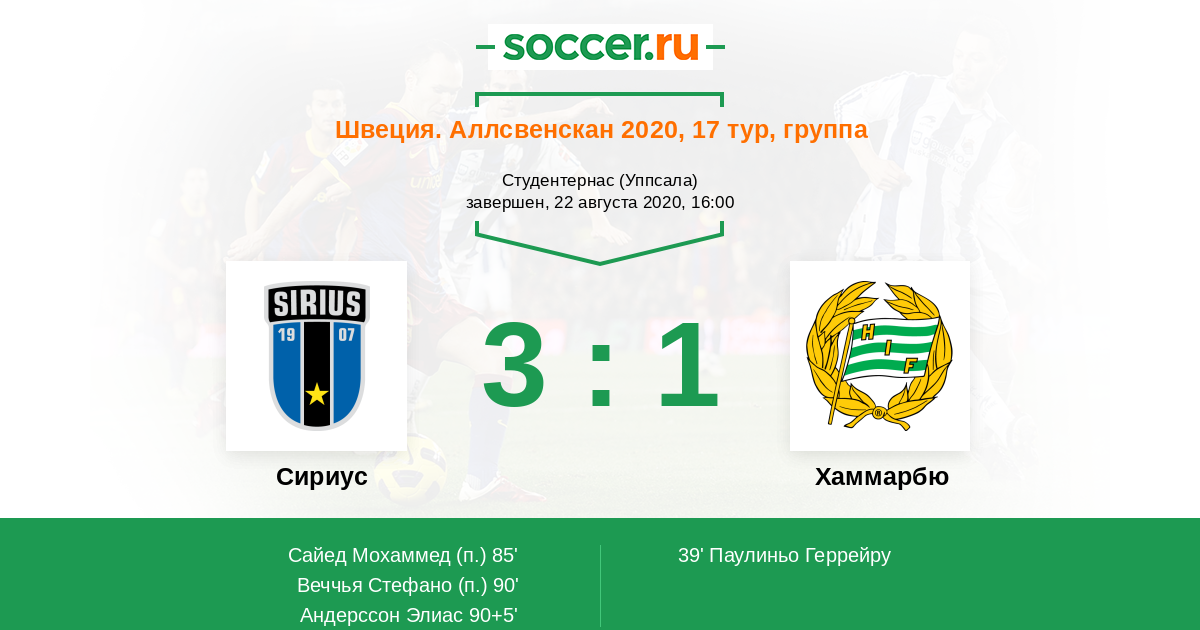 Гол90+5' (3:1) Андерссон Элиас (10) (Тор Никлас (7))