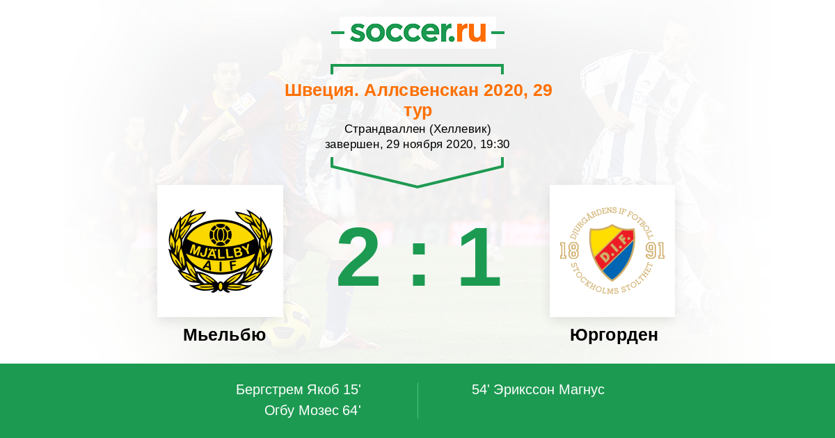 15' (1:0) Бергстрем Якоб (16) (Нильссон Джоэл (9))
