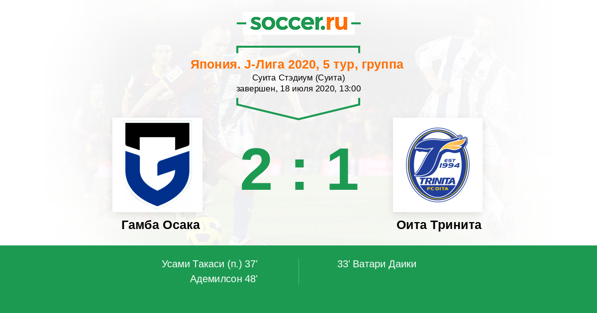 48' (2:1) Адемилсон (9) (Усами Такаси (33))