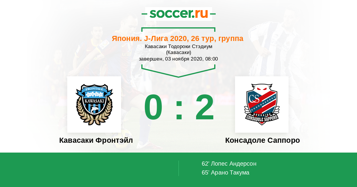 65' (0:2) Арано Такума (27) (Дуглас (33))