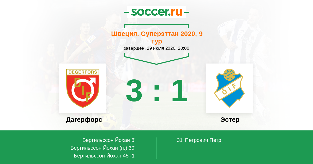 45+1' (3:1) Бертильссон Йохан (9)