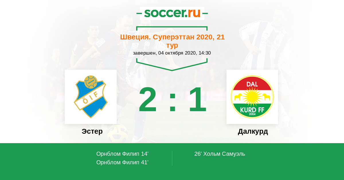 26' (1:1) Хольм Самуэль (5)