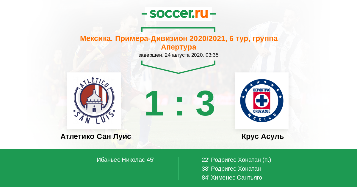 38' (0:2) Родригес Хонатан (21) (Ромо Луис (7))