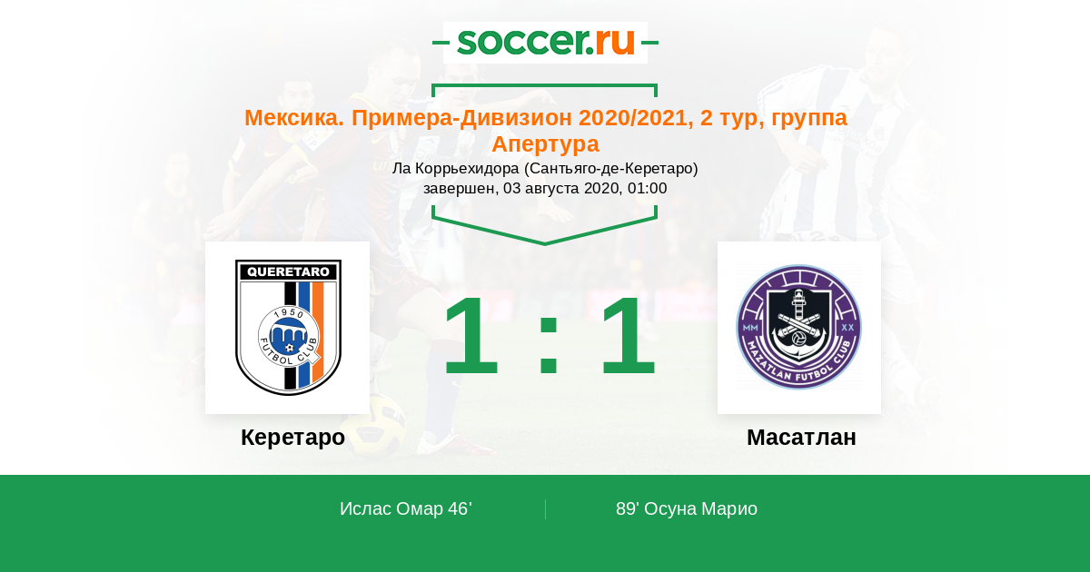 89' (1:1) Осуна Марио (8) (Падиллья Жорже (28))