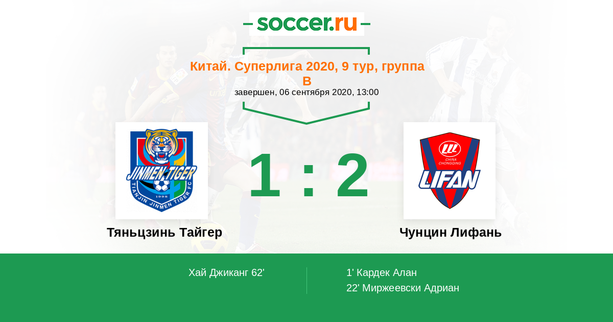 Гол62' (1:2) Хай Джиканг (17) (Юмяо Кьян (23))