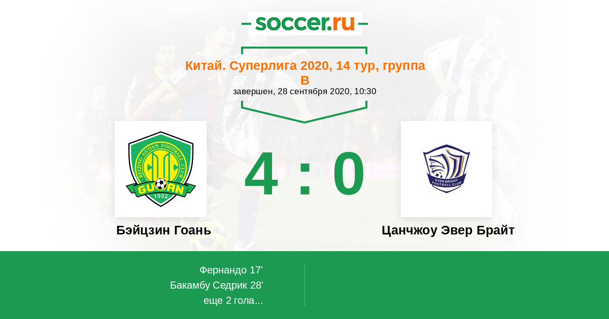 28' (2:0) Бакамбу Седрик (17) (Юнинг Чжан (9))