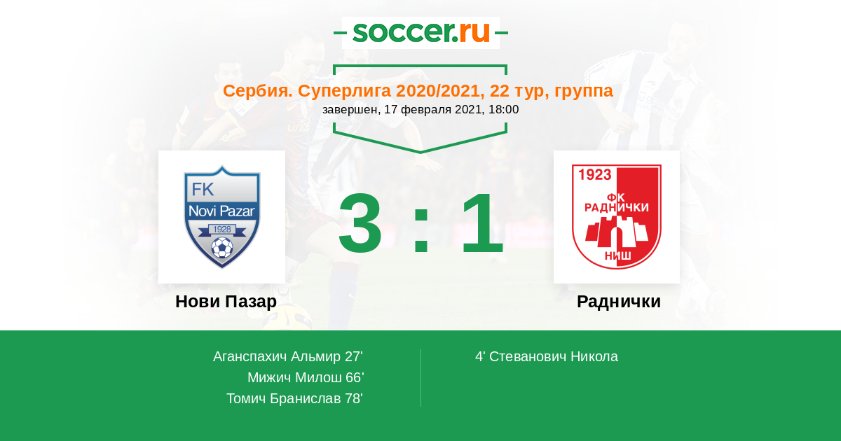 78' (3:1) Томич Бранислав (7)