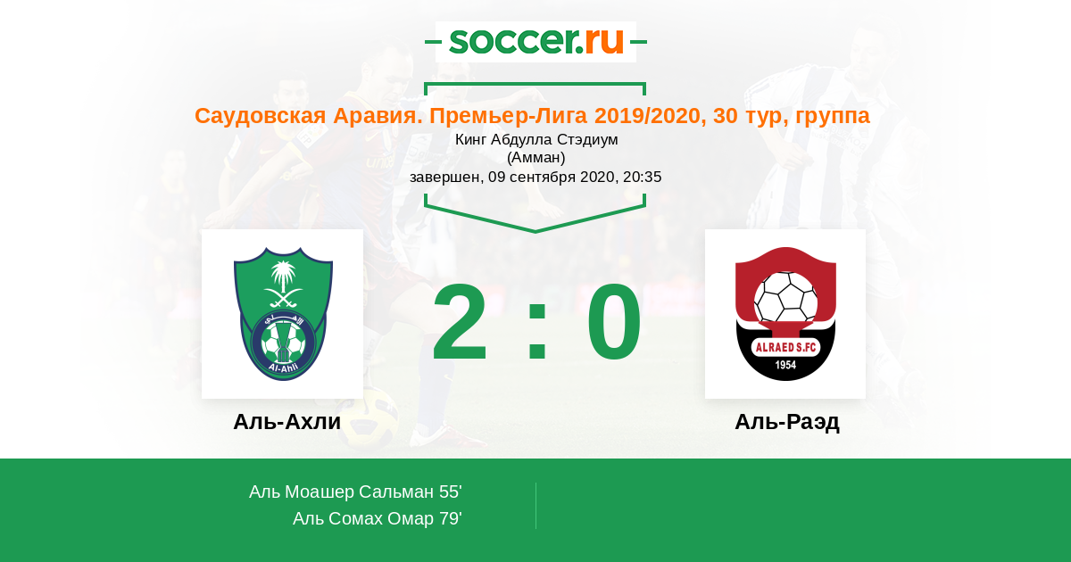 55' (1:0) Аль Моашер Сальман (7) (Аль Маджхад Мохаммед (15))