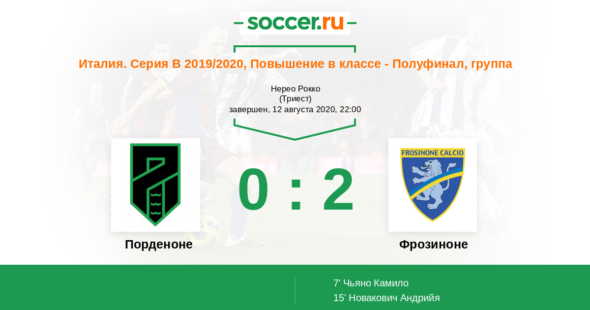 7' (0:1) Чьяно Камило (28) (Бегетто Андреа (13))