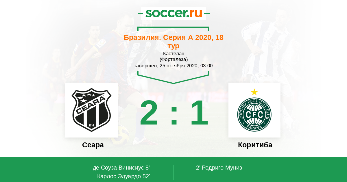 8' (1:1) де Соуза Винисиус (29) (Леонардо Чу (26))