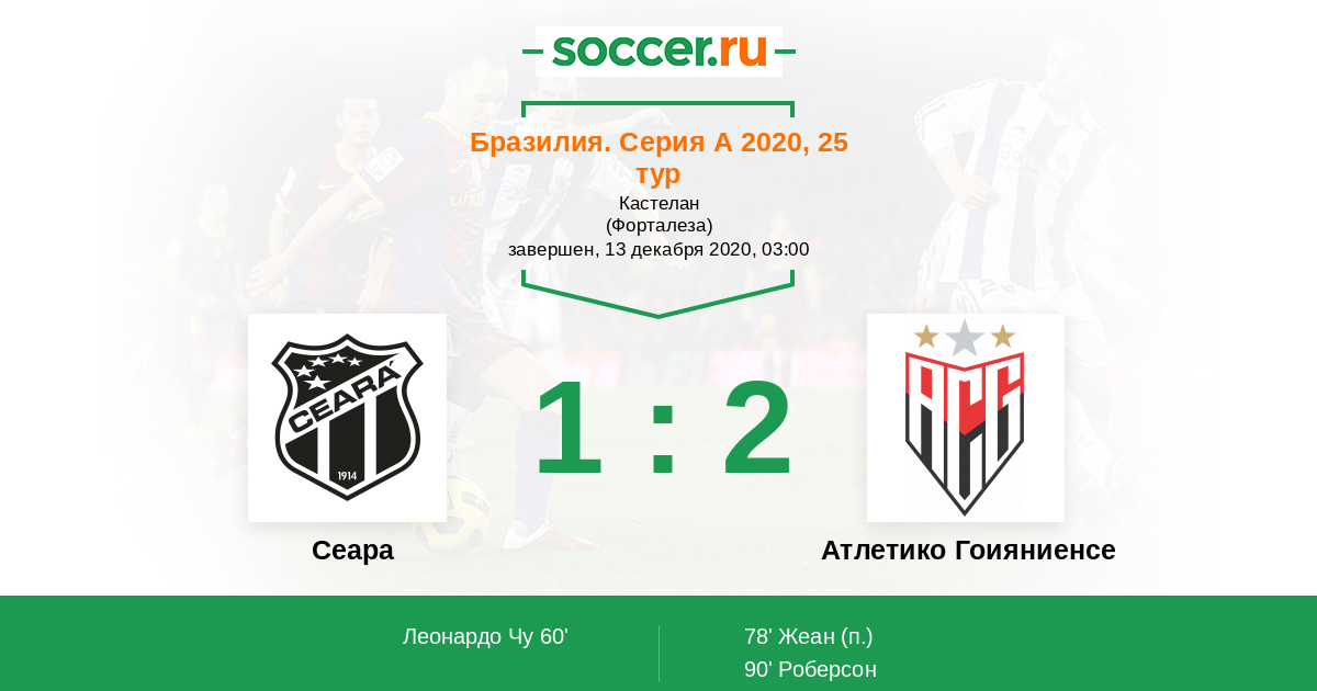 Гол90' (1:2) Роберсон (19) (Фрейтас Марлон (8))