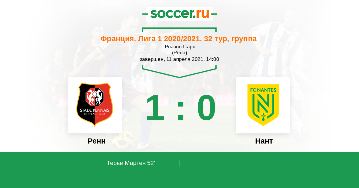 52' (1:0) Терье Мартен (7) (Тэ Флавьен (20))