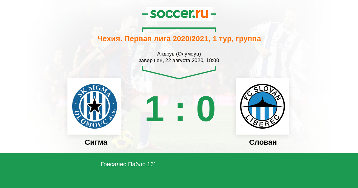 16' (1:0) Гонсалес Пабло (11) (Хубник Роман (4))