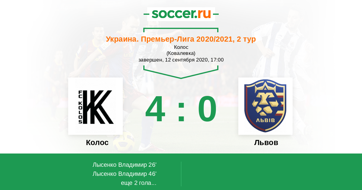 26' (1:0) Лысенко Владимир (7) (Кравченко Никита (23))