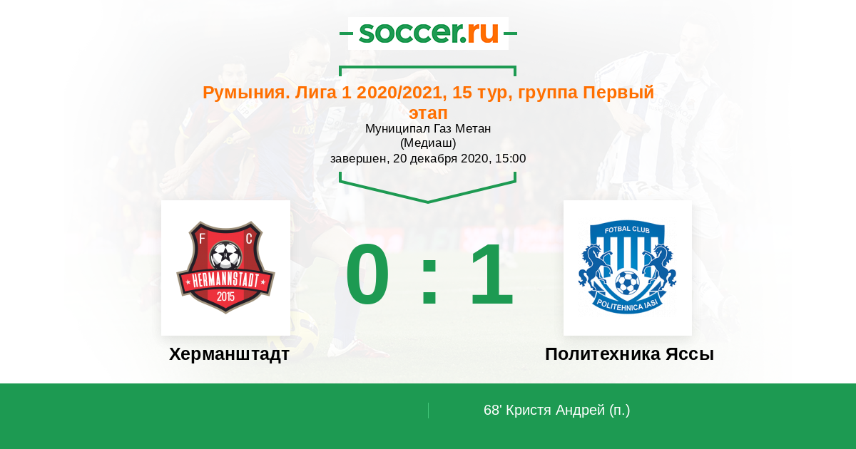 68' (0:1) Кристя Андрей (10)