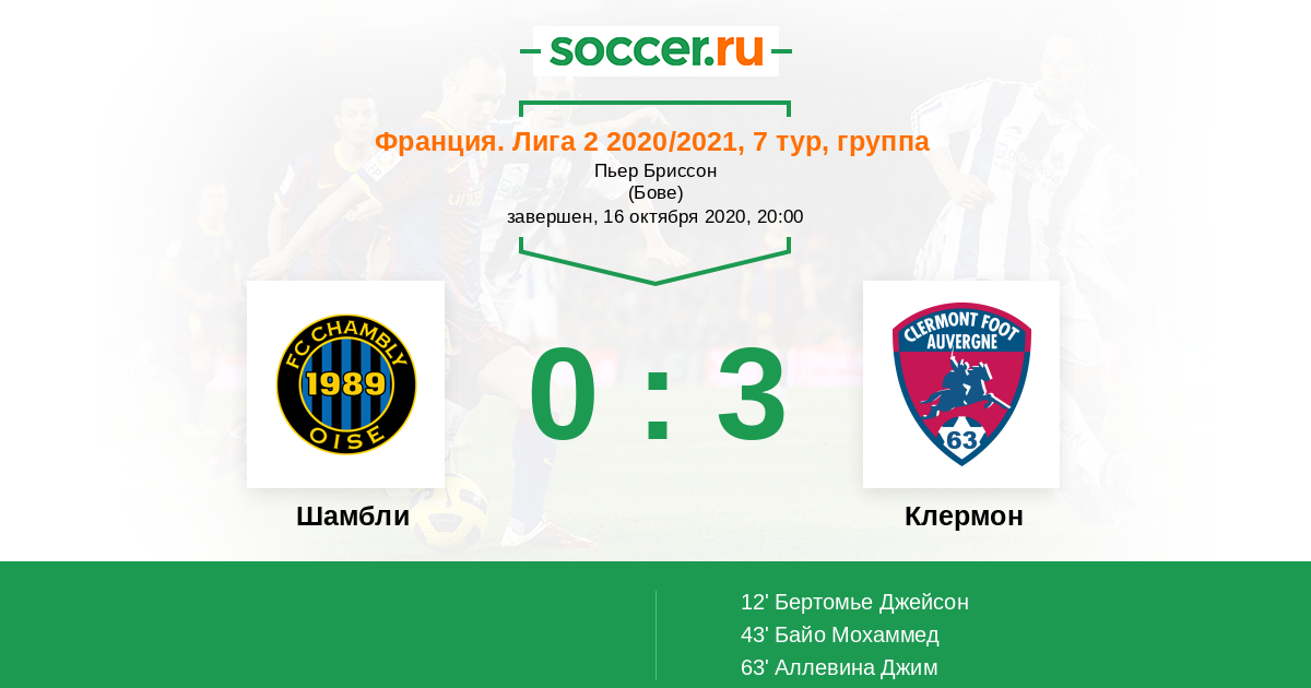 43' (0:2) Байо Мохаммед (27) (Ожье Флоран (21))