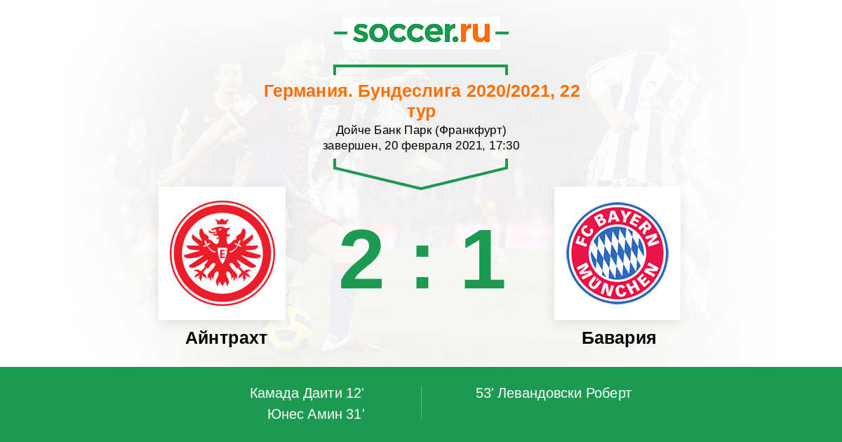 Тут пишут про отсутствие основных в Баварии, по делу, ещё и у Айнтрахта не было самого импактного нападающего Андре Силвы и Джибриль Соу собрал карточек.